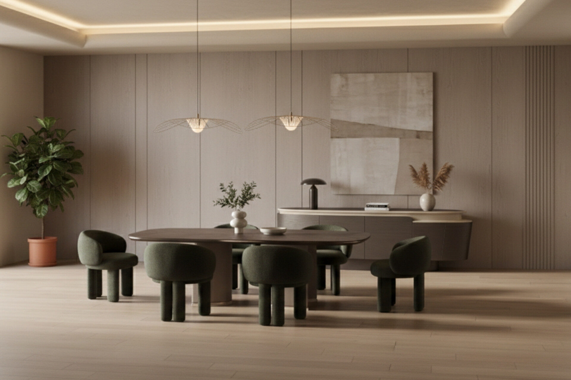 Our dining room sets, which combine elegance and functionality, bring an aesthetic atmosphere to your dining tables. Offering a blend of modern and classic designs, our collection complements your living spaces with stylish and comfortable designs to suit every taste and space.