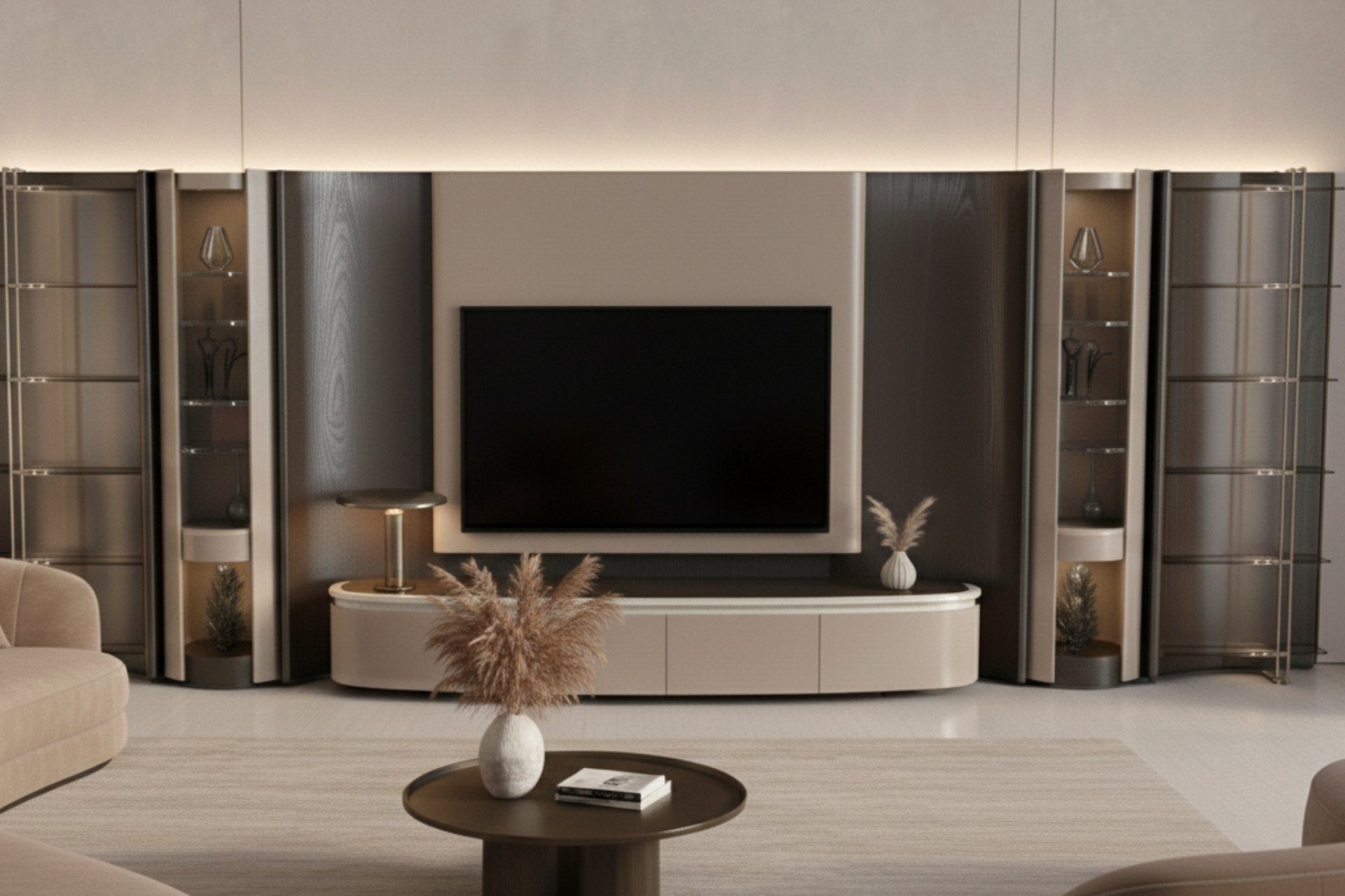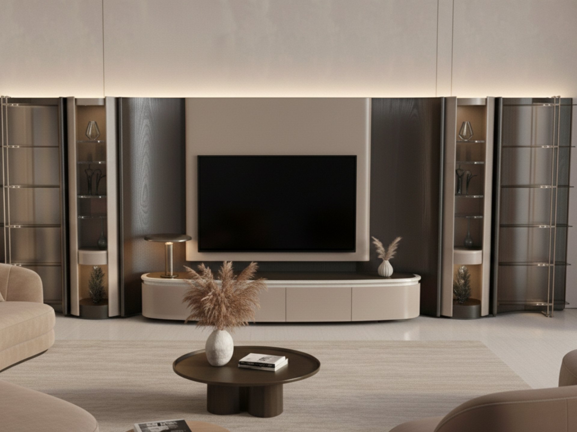 Modern yaşamın ihtiyaç duyduğu depolama alanlarını asil bir formla sunan Siena TV Ünitesi, dağınıklıktan uzak bir şıklık vaat ediyor. Geniş saklama alanları ve estetik raf sistemleriyle hem işlevsel bir kullanım sunuyor hem de mekanın ferahlığını destekliyor. Göz yormayan tasarımı ve kaliteli yüzey dokusuyla Siena, evde sinema keyfinizi veya akşam dinlenmelerinizi daha şık ve düzenli bir atmosferde yaşamanıza olanak sağlıyor.