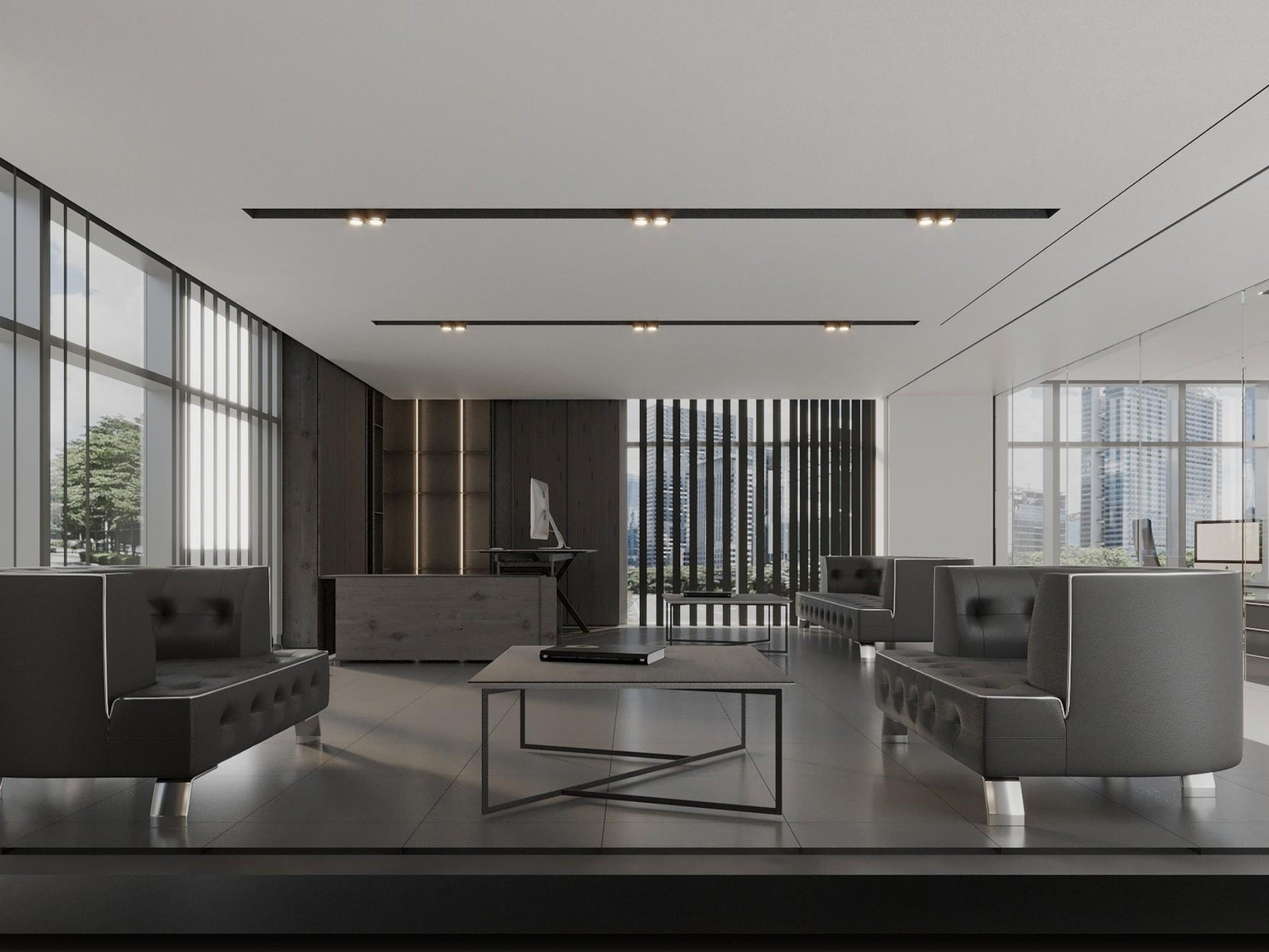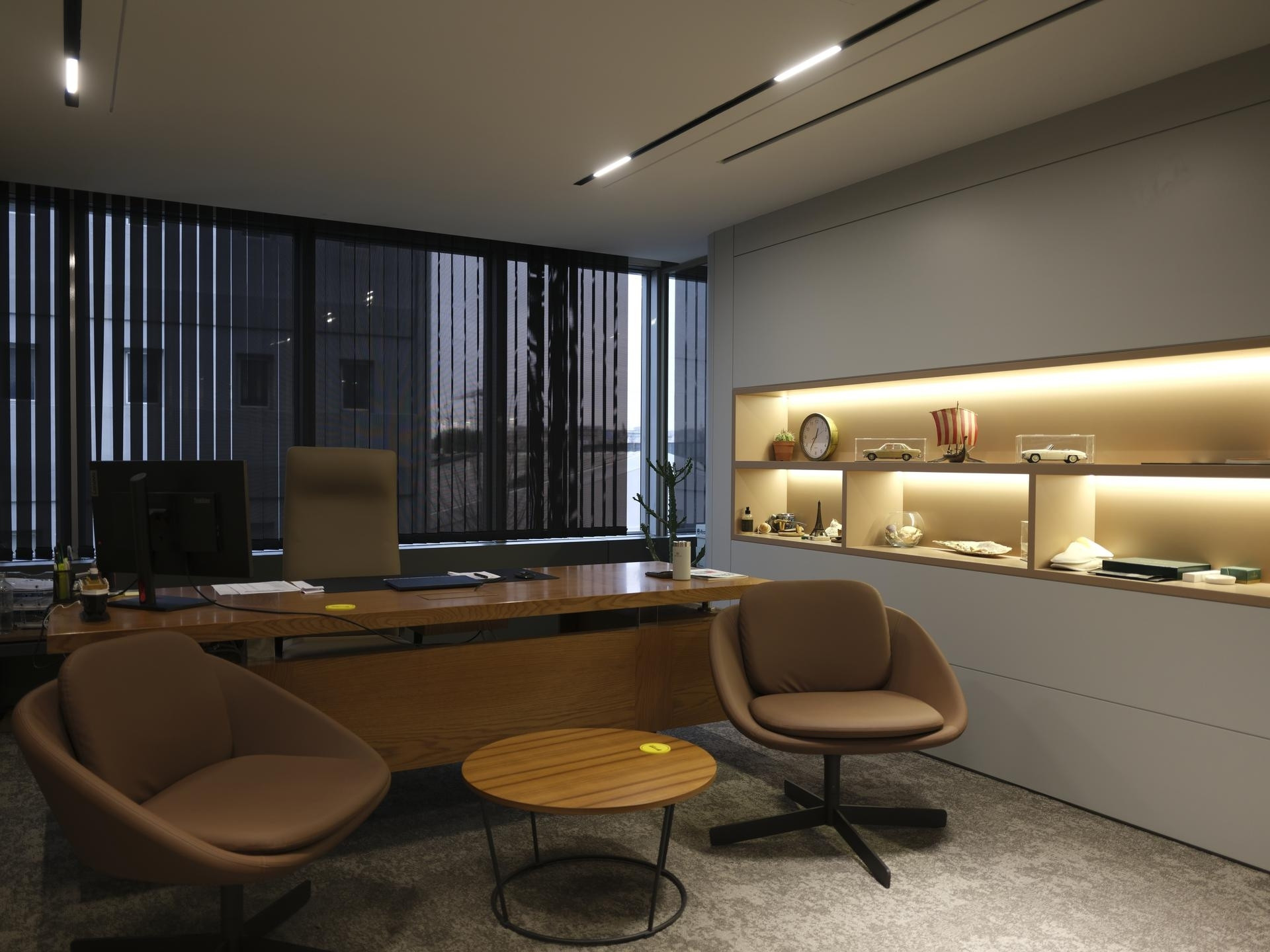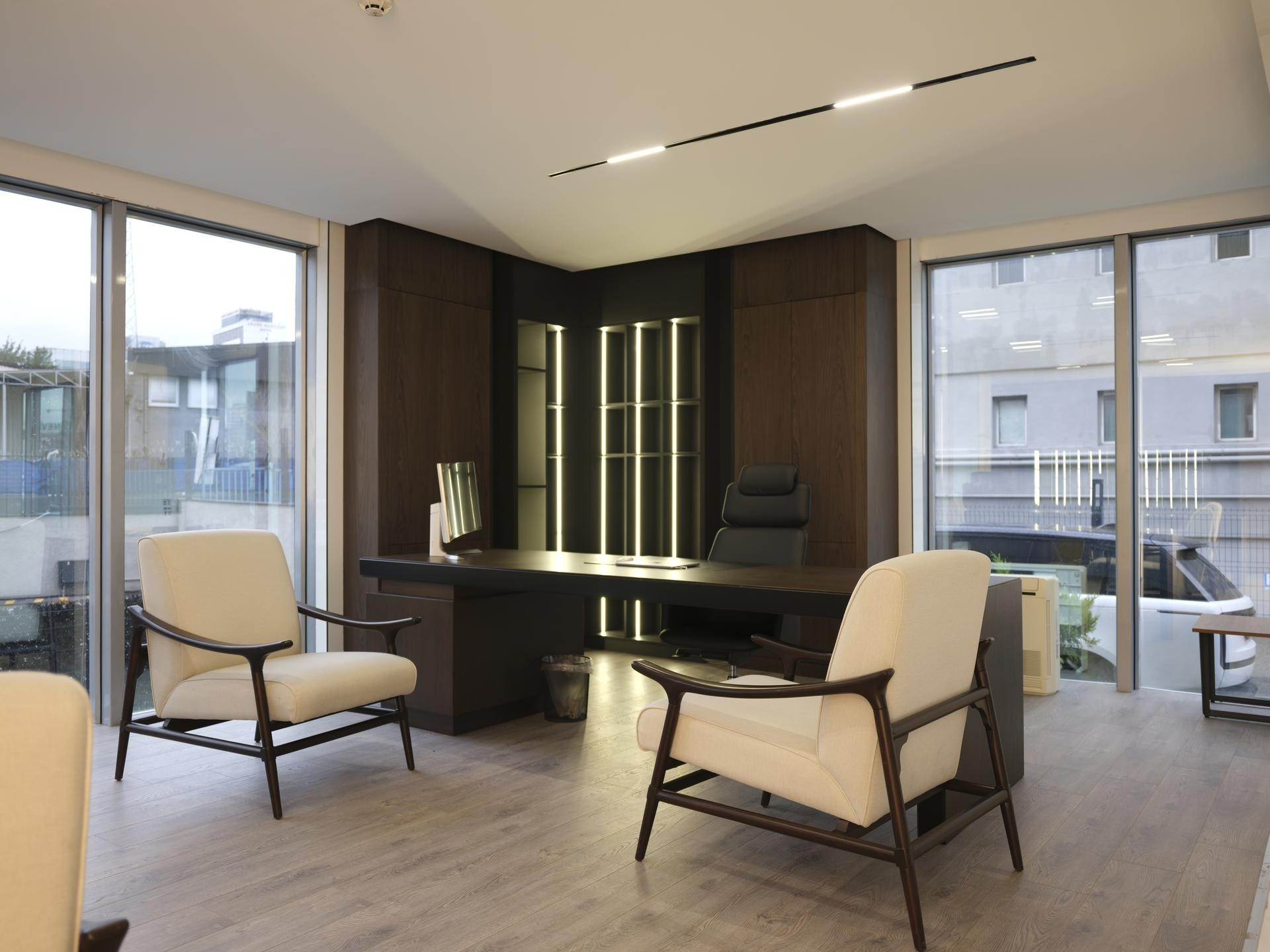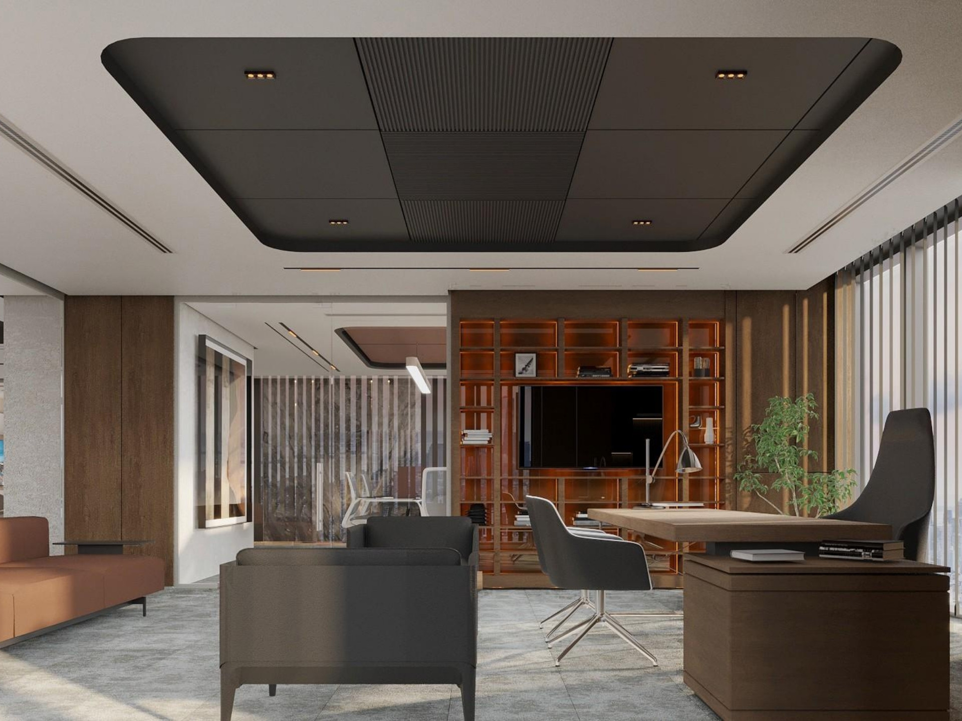 Yönetim Kurulu ve Yönetici Odaları: En üst düzey malzeme kalitesinin kullanıldığı makam odalarında; zeminden tavana kütüphane sistemleri, doğal kaplama duvarlar ve özel ölçü makam masaları.