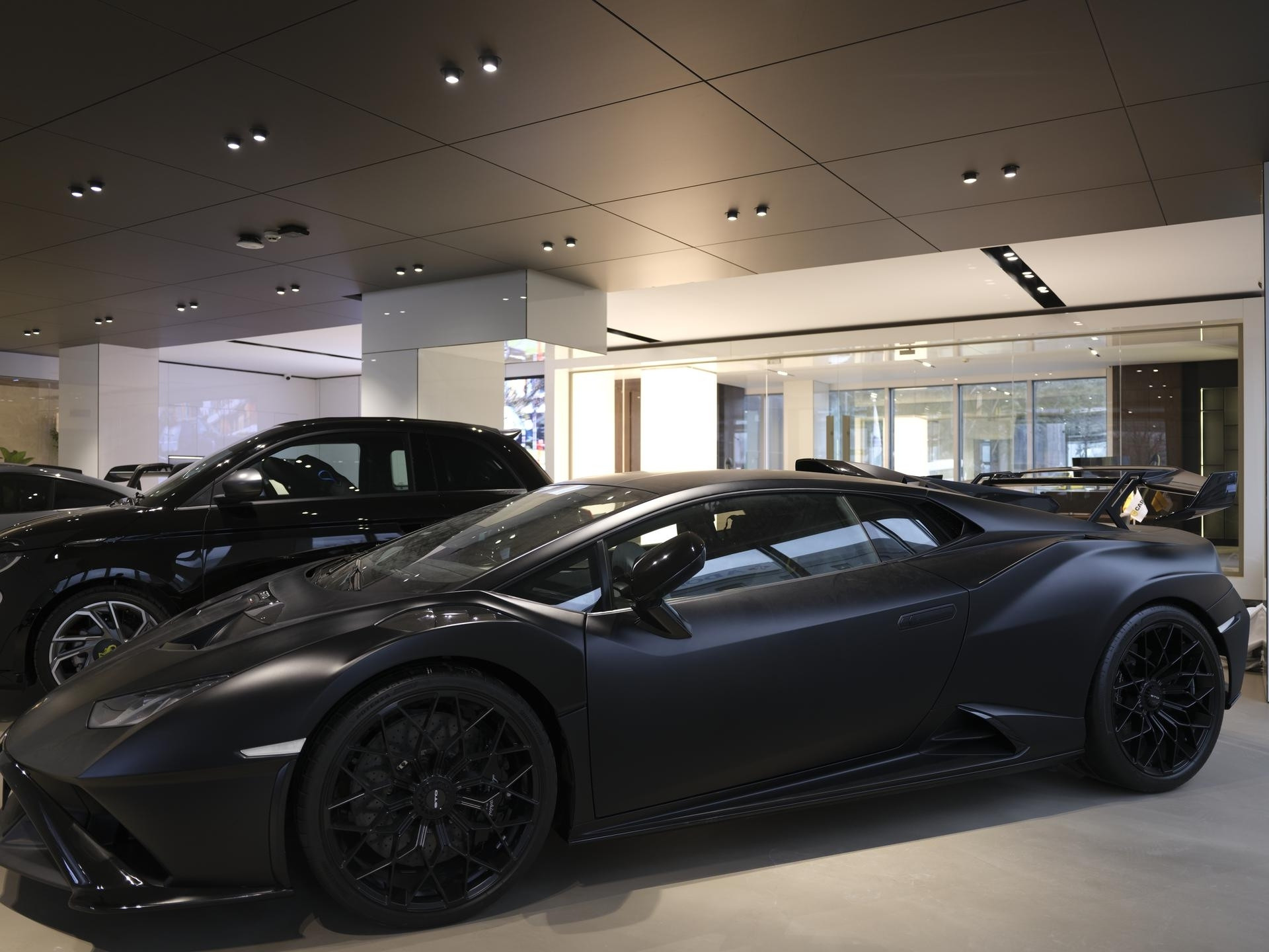 Otomotiv Galeri Alanı: Holding bünyesindeki araçların sergilendiği, mimari estetiğin ve sunumun ön planda olduğu galeri kısmındaki dekoratif ahşap uygulamalar.