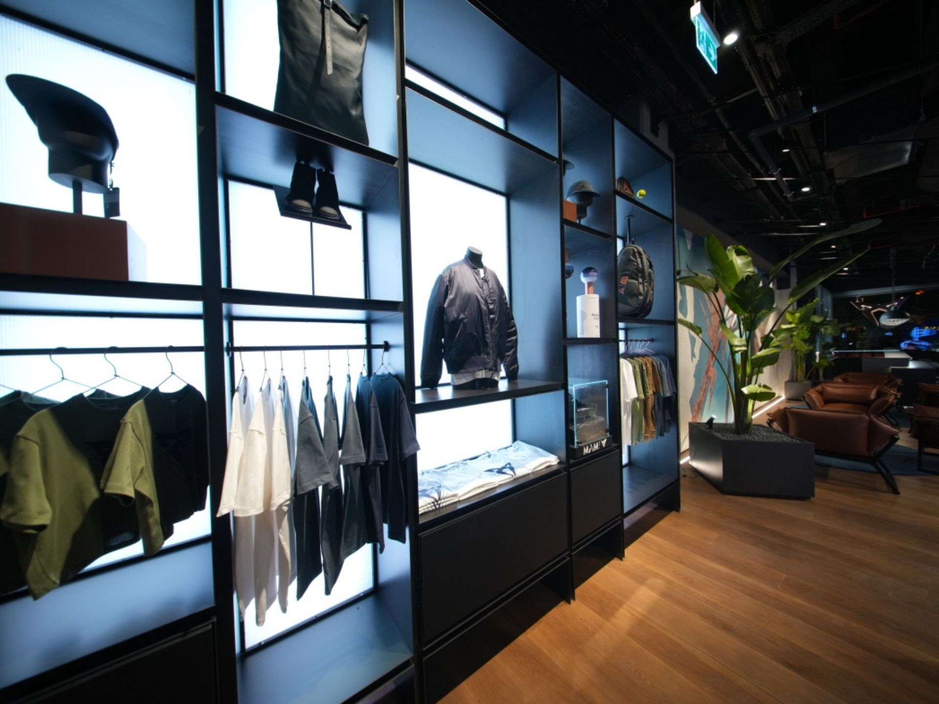 Endüstriyel Sergileme Üniteleri: Markanın karakteristik bakır tonlarına ve sert hatlarına uyum sağlayan; metal karkaslı, entegre LED aydınlatmalı ve özel boyalı ürün sergileme rafları milimetrik hassasiyetle üretilmiştir.