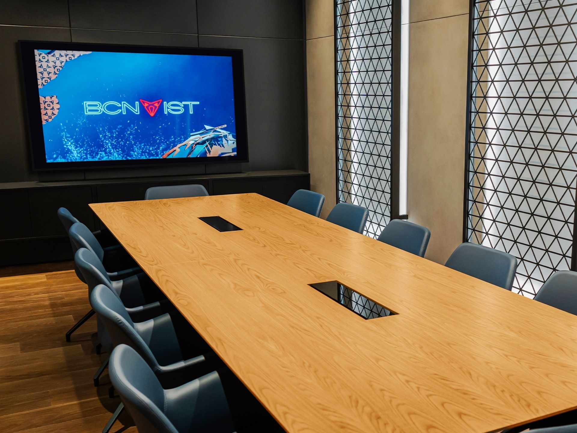 Toplantı ve Çalışma Masaları: Co-working alanlarında kullanılan uzun toplantı masaları, doğal ahşap kaplama tablalar ve entegre elektrik/data çözümleri ile fonksiyonel hale getirilmiştir.