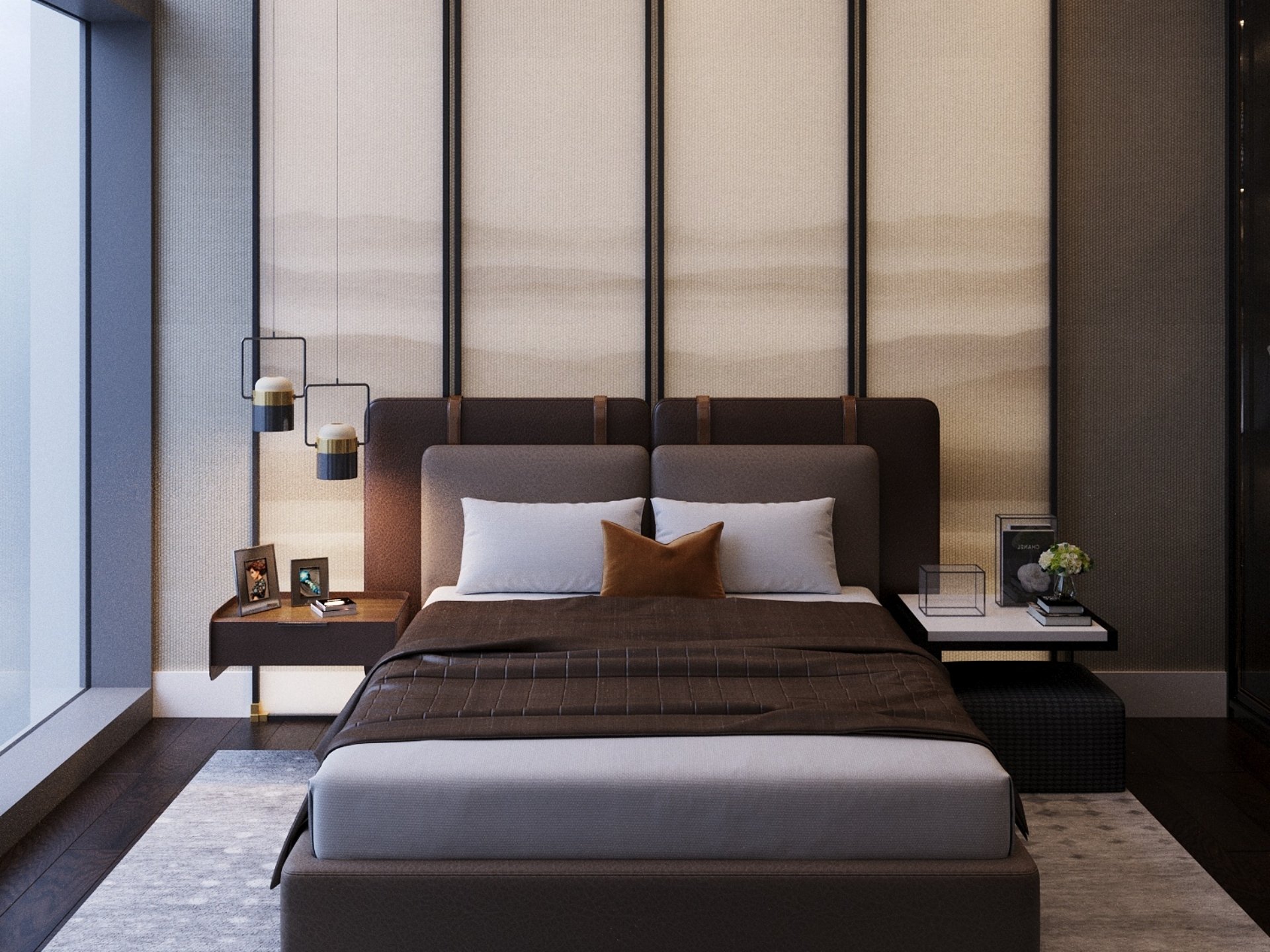 Yatak Odaları: Konforun ön planda olduğu; kumaş ve ahşap kombinasyonlu yatak başı panelleri, komodinler ve mekana özel makyaj masası üretimi.
