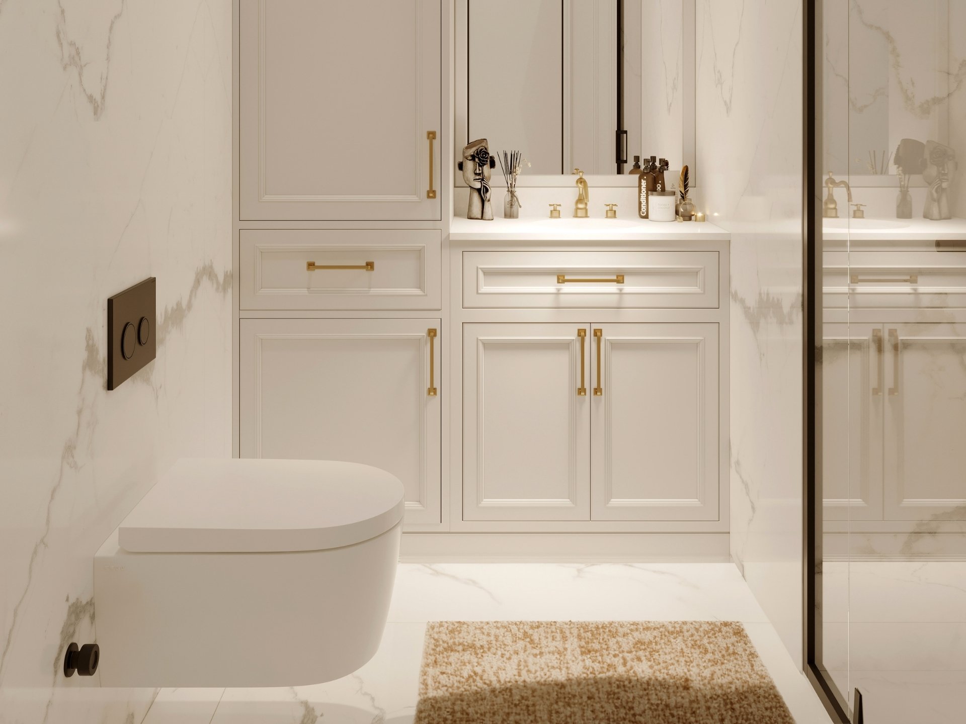 Banyolar: Neme dayanıklı malzemelerle üretilen, mermer lavabolarla tam uyumlu, depolama çözümleri sunan şık ve minimalist banyo dolapları.